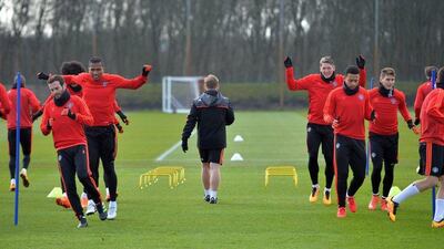 Images from Manchester United's training session on Wednesday as they look to reverse a 2-0 deficit against Liverpool in the Europa League on Thursday night.