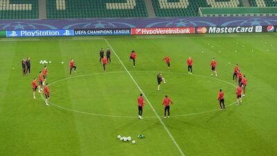 Images of Manchester United training on Monday night in Wolfsburg, ahead of their Champions League match against the German hosts. Click the arrows below to scroll through the photos.