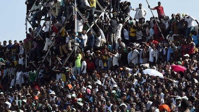 Images from Nigeria’s Africa Cup of Nations qualification match against Egypt that was overrun by fans at the Ahmadu Bello Stadium in Kaduna, with reports putting the attendance figure at 40,000 for the 16,000-listed-capacity venue.