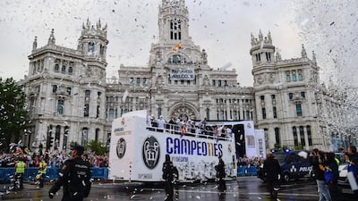 MADRID // Tens of thousands of fans endured rain to greet Real Madrid players as they returned home at 6am on Sunday to celebrate the Uefa Champions League title. Many waited all night after celebrating the team's win over rival Atletico Madrid in a penalty shootout on Saturday in Milan.