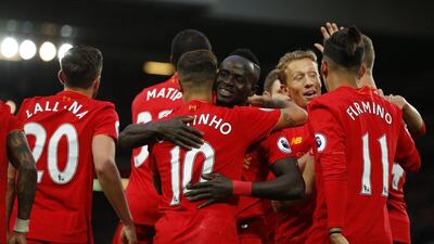 Images from Liverpool's 6-1 win over Watford on Sunday in the Premier League, as Sadio Mane scored twice, and Philippe Coutinho, Roberto Firmino, Emre Can and Georginio Wijnaldum all scored.