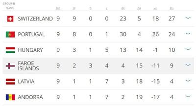 The Swiss lead Portugal in Group B by three points but have a vastly inferior goal difference, meaning a win for Portugal between the two sides in Lisbon on Tuesday will see them claim the automatic place for Russia and Switzerland enter the playoffs.
