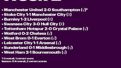 Each week, Thomas Woods (with occasional assists from The National sportsdesk staffers) predicts the outcomes of the English Premier League. In this space we will track his success throughout the 2016/17 season. We will also keep track of a hypothetical table based