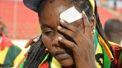 The match, which Ghana won 3-0, was stopped in the 82nd minute and was held up for more than 35 minutes as players from both sides sought a safe haven in the centre of the pitch.