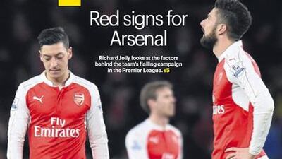 Arsenal’s recent struggles take The National Sport front page on Friday, March 4 as Premier League correspondent Richard Jolly examines just what has gone wrong for Arsene Wenger’s team in recent weeks.