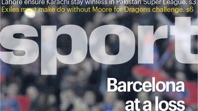 In his weekly column for The National, Diego Forlan writes about Barcelona in the wake of their shocking 4-0 Champions League loss to Paris Saint-Germain, and a forlorn Lionel Messi from the match graces the Sport cover for the Friday, February 17, 2017 edition.