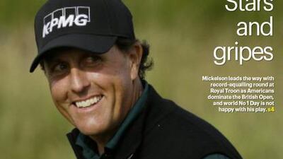 US golfer Phil Mickelson makes the cover of The National Sport on Friday, July 15, 2016 after his record-equalling round at the first round of the British Open at Royal Troon on Thursday.