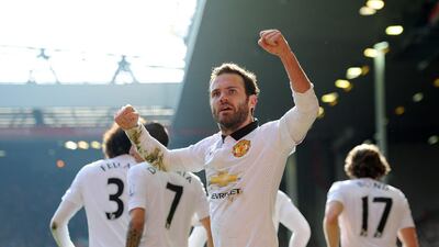 Images from Manchester United's win on Sunday over Liverpool at Anfield, with Juan Mata scoring twice for United to provide the difference and earn an a crucial three points to open a gap on the hosts in the Premier League race for top four. Click the arrows above to scroll through the photos.