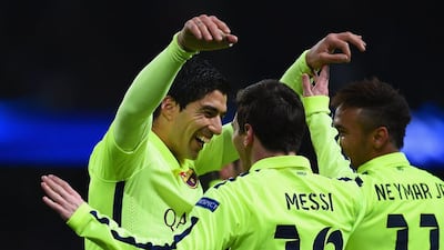 Images from Tuesday night's first leg of the Champions League last 16 tie between Barcelona and Manchester City, with Luis Suarez scoring twice to give Barca the edge ahead of the second leg at the Camp Nou in March before Sergio Aguero salvaged City's chances by pulling one back late. Click the arrows above to scroll through the photos.