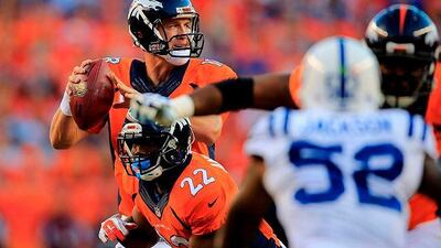 Manning scorched his former team, completing 22-of-36 passes for 269 yards and three touchdowns while the Broncos’ defensive unit, revamped after Denver’s humbling 43-8 loss to Seattle in the Super Bowl last February, kept Manning’s Indy replacement, Andrew Luck, struggling most of the night.