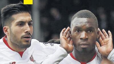 Christian Benteke and Emre Can celebrate on The National Sport front page on Monday, March 7 after the Belgian striker scored a last minute penalty to earn Liverpool a late win at Crystal Palace.