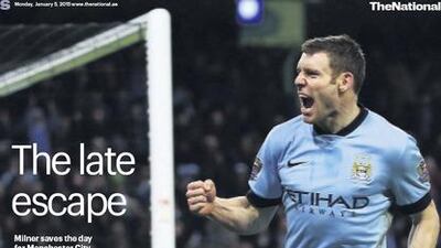 The National’s Sport cover for the Monday, January 5 issue, featuring Manchester City hero James Milner, whose two goals overcame a late 1-0 deficit in a 2-1 FA Cup third round win over Sheffield Wednesday on Sunday at the Etihad Stadium.
