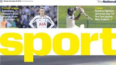 The National’s Sport cover for the Monday, November 10 issue, featuring Nico Rosberg after winning the Brazilian Grand Prix.