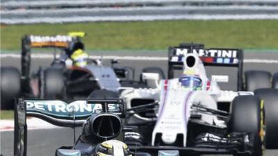 Lewis Hamilton cuts through the field in his Mercedes-GP during the Belgian Grand Prix on The National Sport front page on Monday, August 29.