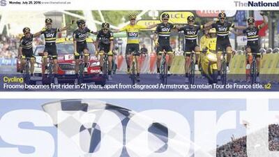 Lewis Hamilton makes the cover of The National Sport on Monday, July 25, 2016 after taking the chequered flag to win the Hungarian Grand Prix on Sunday.