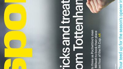 Son Heung-Min scored three of Tottenham's six goals against Millwall on Sunday to help the club advance to the FA Cup semi-final, and the South Korean star takes the Sport cover for the Monday, March 13, 2017 edition of The National.