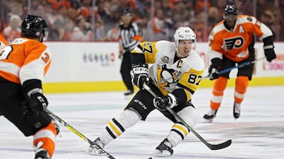 Those were the words from the Pittsburgh announcer Paul Steigerwald when Sidney Crosby scored during his return to action on Tuesday. Crosby had missed six games because of a pre-season concussion. In his first three games back, the team went 3-0 and the captain chipped in two goals and an assist. His goal to give the Penguins a 3-2 lead over the Islanders on Thursday was vintage Crosby, combining power and touch. First he checks Johnny Boychuk (best name in hockey) into the endboards. Boychuk goes flying and loses his stick. Crosby skates behind the net, then slides out in front of the goalie while Boychuk is looking for his stick. Crosby stops a hard pass from the point on his backhand, quickly brings it to his forehand and snaps it along the ice just outside Jaroslav Halak’s right pad. Easy-peasy for the world’s best hockey player.