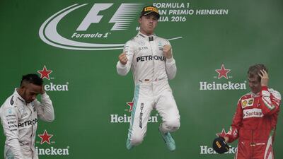 Images from the Italian Grand Prix on Sunday, Nico Rosberg winning at a canter as Lewis Hamilton fell behind early before fighting back to second. Rosberg now trails Mercedes teammate Hamilton by just two points in the drivers' championship standings.