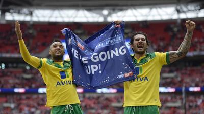 London // Norwich secured an immediate return to the Premier League and an estimated promotion windfall of up to $235 million by beating Middlesbrough 2-0 in the second-tier playoff final on Monday. Norwich seized control of world football’s most lucrative club match thanks to goals by Cameron Jerome and Nathan Redmond by the 15th minute at Wembley Stadium. Click the arrows below to scroll through the photos.