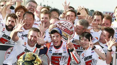 The championship, now a victory procession for Marquez, heads to Phillip Island, Australia next week.