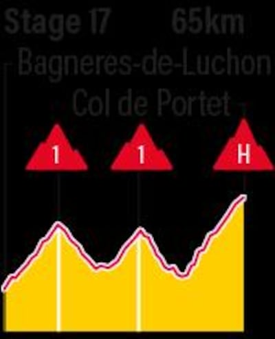 But the two key mountain challenges are a brutal, uphill 31km individual time trial and a short, sharp shock of a 17th stage with just 65km, featuring 25km of hair-raising descents and 38km of climbs to a summit finish at the Col de Portet in the southwest.