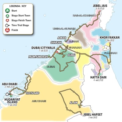 The race begins on Sunday with a team time trial in Abu Dhabi and concludes in Dubai on March 2, covering a distance of more than 1,090 kilometres across the all seven emirates.