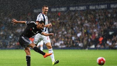 Images from Sunday's play in the Premier League, with Chelsea travelling to West Bromwich Albion and winning 3-2 behind goals from newcomer Pedro, Diego Costa and Cesar Azpilicueta; another defender scoring a crucial goal as Aleksandar Kolarov opened for Manchester City and Samir Nasri added the finishing touch in a 2-0 win over Everton; and Watford and Southampton playing a goalless draw. Click the arrows below to scroll through the photos.