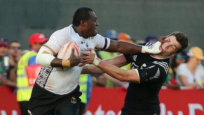 Fiji ran past England to secure the men's Cup title at the Dubai Rugby Sevens on Saturday at The Sevens while USA topped New Zealand for third place.