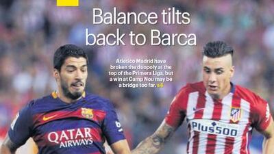 Barcelona and Atletico Madrid adorn The National Sport front page on Saturday, January 30 ahead of their Primera Liga top of the table clash.