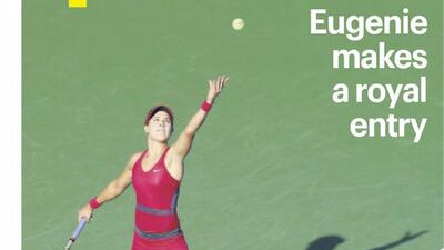The National’s Sport cover for the Saturday, August 23 issue, featuring Canadian rising tennis star, 20-year-old Eugenie Bouchard, who has signed up with the UAE Royals franchise in the fledgling International Premier Tennis League (IPTL).