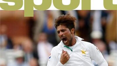 Pakistan's Mohammad Amir took his first Test wicket in six years when be bowled England captain Alastair Cook at Lord's and is featured on The National Sport front page on Saturday, July 16, 2016.