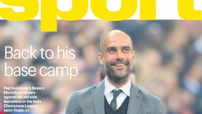 Bayern Munich manager Pep Guardiola adorns The National Sport front page on Saturday, April 25 after discovering he would be making his first return to Barcelona for the Uefa Champions League semi-finals.