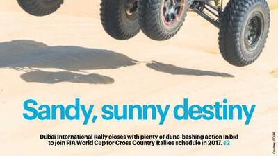 Emirati Ahmed Al Maqoodi is on the cover of The National's Sport section on Saturday, December 10 after winning the Dubai International Rally.