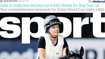 Dubai World Cup favourite Arrogate takes the Sport cover for the Saturday, March 25, 2017 edition of The National.
