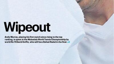 The first part of that plan hit a snag on Friday, when the Scotsman – who takes the Sport cover for the Saturday, December 31, 2016, edition of The National – fell to No 11 David Goffin in the semi-finals of the Mubadala World Tennis Championships.