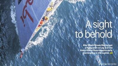 The National's Sport cover for the Sunday, January 4 cover, featuring Abu Dhabi Ocean Racing's Azzam starting out Leg 3 of the Volvo Ocean Race in front.