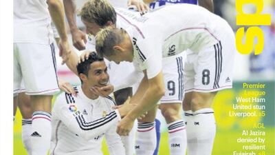 The National’s Sport cover for the Sunday, September 21 issue, featuring Cristiano Ronaldo and a Real Madrid side that fired off eight goals against Deportivo la Coruna in a La Liga romp.