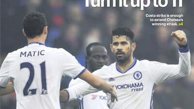 Diego Costa of Chelsea is on The National's Sport cover for Sunday, December 18, after a win against Crystal Palace in the Premier League.