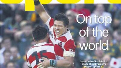 The Japan rugby team bulldoze their way onto The National Sport front page on Sunday, September 20 after stunning South Africa – and the world – by defeating the Springboks at the Rugby World Cup.