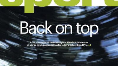 Lewis Hamilton drives around Monza on The National Sport front page on Sunday, September 4, as the Mercedes-GP driver claimed pole for the Formula One Italian Grand Prix.