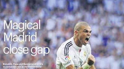 The National's Sport cover for the Sunday, October 26 issue, featuring a victorious Real Madrid side in the first clasico of the season – rightful, in Andy Mitten's mind, 3-1 winners over Barcelona.