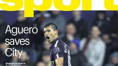 The National’s Sport cover for the Sunday, November 9 issue, featuring a Manchester City side that had to battle Queens Park Rangers to save point on Saturday in the Premier League.
