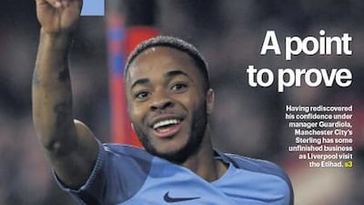 Raheem Sterling adorns The National Sport front page on Sunday, March 19 ahead of Manchester City's Premier League meeting with his old club Liverpool.