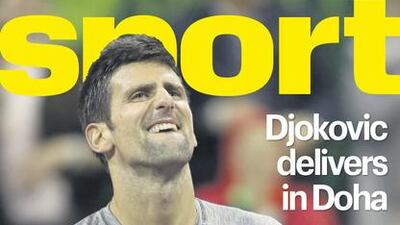 Novak Djokovic celebrates on The National Sport front page on Sunday, January 8 following his epic victory over Andy Murray in the Qatar Open final.