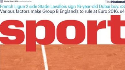 Novak Djokovic makes The National Sport's front page on Monday, June 6 after he beat Andy Murray to lift his first French Open men's singles title.