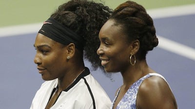 Images from Serena Williams and sister Venus in their quarter-final match at the US Open on Tuesday, won by Serena, now two victories away from the calendar grand slam. Click the arrows below to scroll through the photos.