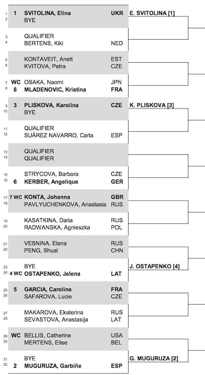 Even with the absentees, the Dubai event still features six of the 10 top-ranked players in the women’s game. The field is headlined by No 1 seed Elina Svitolina, who returns to defend the title she won last year, with reigning Wimbledon champion Garbine Muguruza also competing. Those two players have received a bye into the second round, alongside French Open champion Jelena Ostapenko and world No 5 Karolina Pliskova.