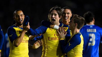 Images from Arsenal's 3-2 win over Brighton & Hove Albion on Sunday in the fourth round of the FA Cup at Brighton's Amex Stadium. Theo Walcott, Mesut Ozil and Tomas Rosicky all scored in the victory, which leaves Arsenal as one of the last top Premier League sides in the knockout tournament following losses by the likes of Chelsea, Manchester City and Tottenham Hotspur. Click the arrows above to scroll through the photos.