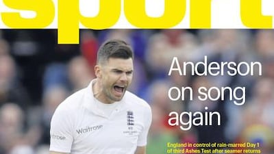 James Anderson bowls his way onto The National Sport front page on Thursday, July 30 after taking Ashes-best figures to put England in early control of the third Test at Edgbaston.