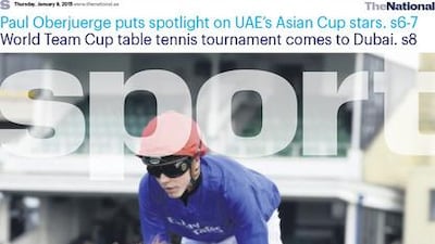 The National’s Sport cover for the Thursday, January 8 issue, featuring Godolphin jockey James Doyle.